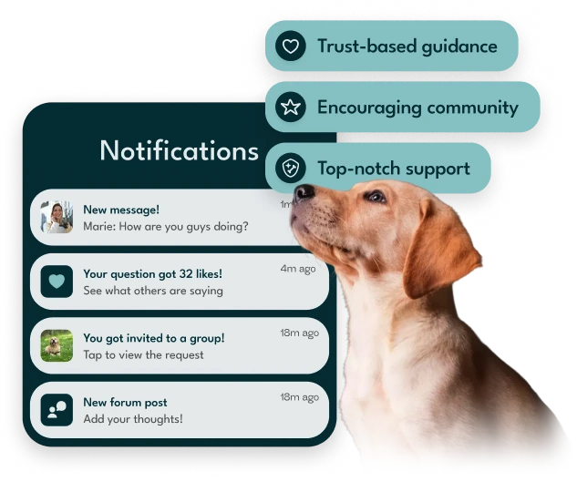 Your online home for continuous learning and support. Get your questions answered by experts, join live Q&A sessions, and connect with a community of like-minded dog parents.